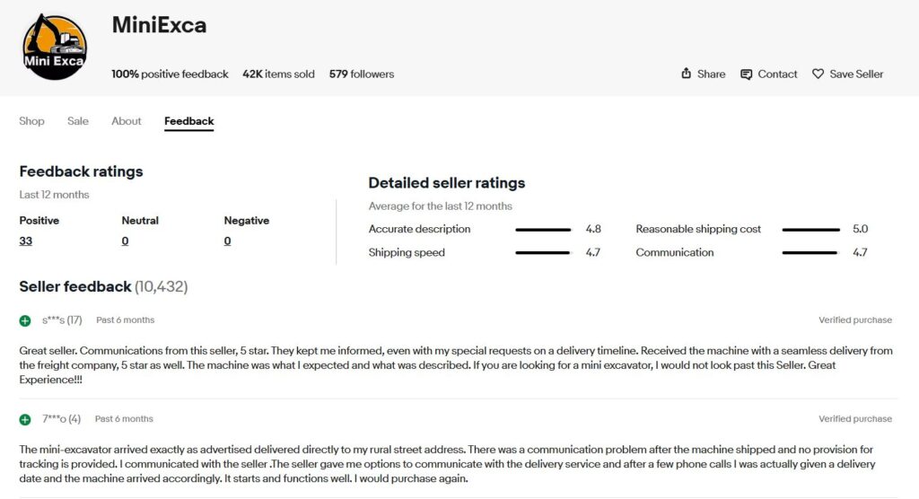 Miniexca eBay Feedback